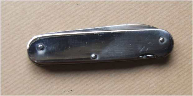 inox - 9 cm - Marque 92 1 lame, 2 tournevis, 1 vrille Bon état. Quelques traces d'oxydation. Couteau entièrement en inox. Finition soignée Années 60-70 Marque : 92 dans un oval 25 euros |
